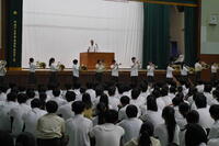 全国総合文化祭(香川総文)壮行会、新生徒会認証式が行われました。