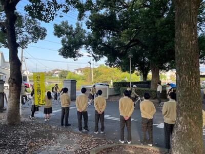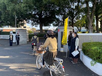 10月24日(金)、保護者会安全委員会の皆様のご協力の下、交通事故の防止を目的にマナーアップ運動を行いました。生徒の通学路の各所に立ち、生徒の登校の様子を見守りました。学校の正門には生徒の交通委員が立ち、「おはようございます!」と元気に挨拶を交わしていました。