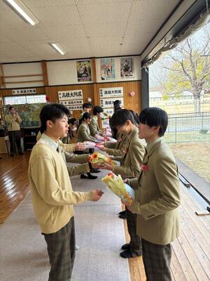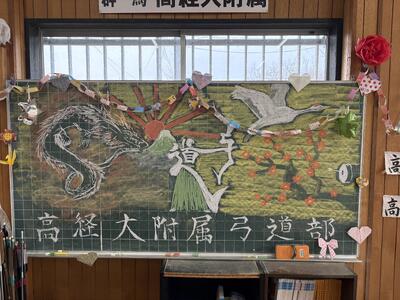 【弓道部】卒部式を行いました 投稿: 高経附2 (03/04) 3月2日に本校は卒業式を迎えました。 弓道部では毎年、卒業生を送り出す卒部式を行っています。 卒業生1人ひとりから3年間を振り返っての言葉や今後の後輩の活躍を応援する言葉をもらいました。 現役生からは花束と色紙、そして顧問からは3年間の活躍を詰め込んた記念楯を贈りました。 3年間お疲れさまでした。 これからのご活躍を願っています! Tweet -