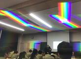 前半は、偏向フィルムを用いた実演実験を交えて普段見ることができない原子と光の関係を体験し、後半は、エネルギー変化と原子や分子の構造について大学での最先端の研究を学ばせて頂きました。原子や分子は非常に小さく、目で見ることはできませんが、光を用いることで、化学反応の途中でどのように分子の構造が変化していくか知ることができる貴重な体験となりました。