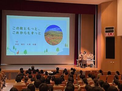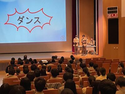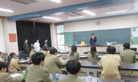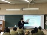 前半は、医療に関わる職種の紹介をしていただきました。特に専門である放射線治療について丁寧に教えて頂きました。後半は、レクリエーション(ジェスチャーや会話を制限された状態と、制限なしの状態でバースデーチェーンやペーパータワーを作成)を通して医療におけるコミュニケーションの重要性を体験することができました。生徒は最初は緊張していた様子でしたが、津野先生が軽妙なトークを展開して頂いたこともあり、後半は非常に盛り上がる講義となりました。